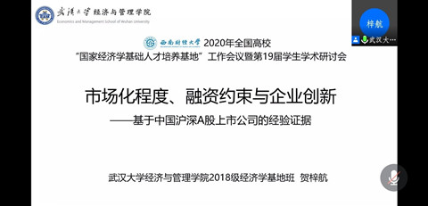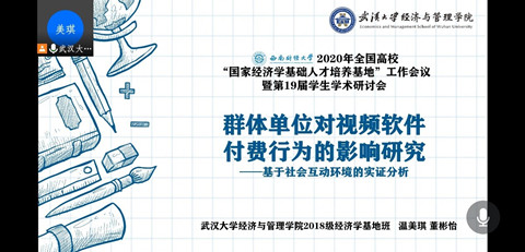 10月25日下午,第十九届学生学术研讨会通过在线会议形式举行。研讨会共设置三个分会场,每一分会场均设置主持人和会务秘书,负责主持会场讨论、针对提出相关意见。来自全国14所高校的34组同学参与会议,并由各组学生代表进行学术报告,展示其课题研究成果。来自永利官网2018级经济学基地班的温美琪、董彬怡和贺梓航同学分别展示了《群体单位对视频软件付费行为的影响研究——基于社会互动环境的实证分析》与《市场化程度、融资约束与企业创新——基于中国沪深A股上市公司的经验证据》两篇参会论文,各位评委老师对文章做出了积极评价,并提出了修改意见,三位同学从中受益良多。