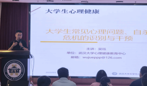 为更好地帮助班级导师了解新时代学生的培养特点,有针对性地开展引导工作,本次培训会邀请了永利官网大学生心理健康教育中心吴珏老师带来了题为“大学生常见心理问题、自杀危机的识别与干预”的专题辅导。他为老师们详细讲解了危机识别的线索与方法,通过讨论、提问等互动方式,利用案例分析进行现场模拟,帮助老师们加深感受、增强理解,并进一步梳理危机干预的策略与处置流程。