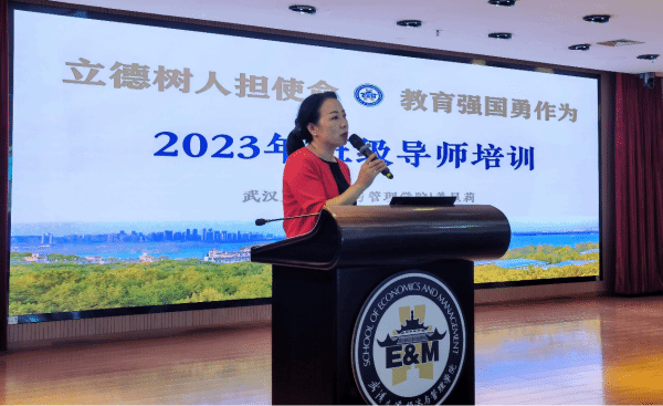 培训第一项,姜星莉作题为《立德树人担使命,教育强国勇作为》的专题报告。她从理论学习出发,带领全体班导师深入学习习近平总书记关于教育的重要论述,以及深入开展学习贯彻习近平新时代中国特色社会主义思想主题教育的重大意义。接着,结合“推进中国式现代化,武大何为”这个时代命题以及“yL23411永利官网登录何时建成中国特色、世界一流大学”这个重大问题,梳理解读新时期学校本科拔尖人才培养、研究生教育高质量发展的政策文件,并分享自己对学院在新时期、新要求下如何实现高质量内涵式发展的思考。最后,她结合优秀班级导师案例,详细阐述了班级导师的工作职责,勉励班级导师们努力做精于传道授业解惑的“经师”和“人师”的统一者。