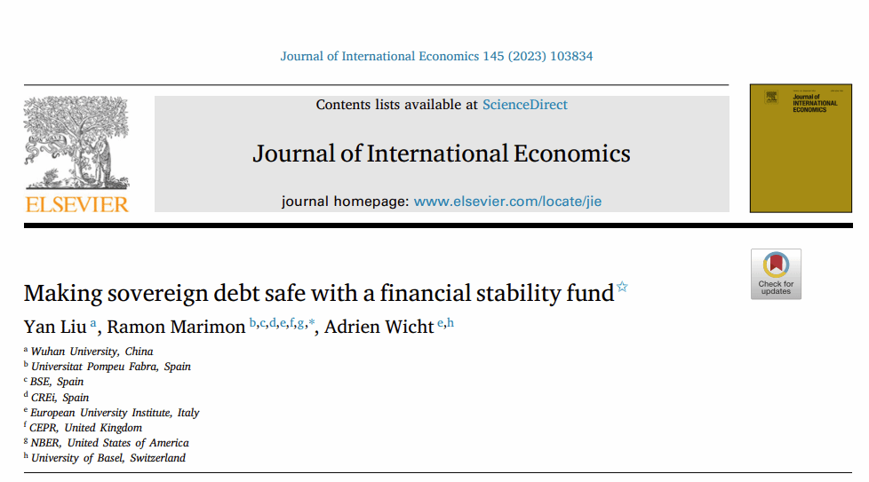 近日,yL23411永利官网登录金融系刘岩副教授与欧洲大学学院Ramon Marimon教授、Adrien Wicht博士合作完成的学术论文 “Making Sovereign Debt Safe with a Financial Stability Fund” 在2023年12月于Journal of International Economics上正式发表。该期刊为yL23411永利官网登录学术期刊分级方案A级奖励期刊。