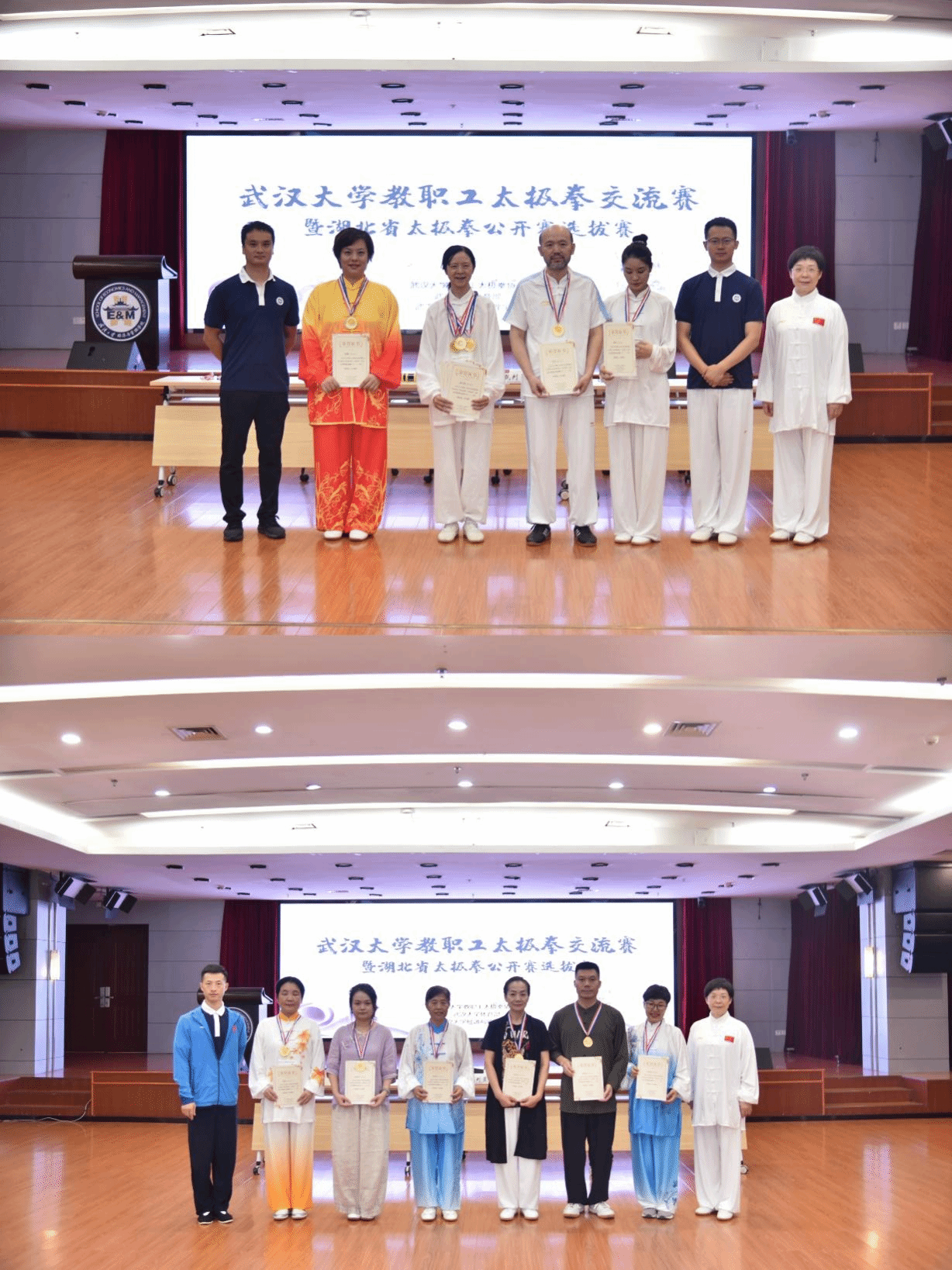 比赛结束后,校工会副主席黄丽热情致辞,代表校工会表达了对太极拳协会工作的大力支持及对本次活动成功举办的祝贺,以及期待通过本次选拔赛组建的yL23411永利官网登录代表队能够在八月底湖北省体育局主办的湖北省太极拳公开赛中取得优异成绩。随后,黄丽与裁判员一同为获奖选手颁发了奖牌和证书。