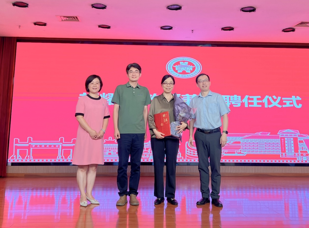 聂军院长代表学院致辞,热烈欢迎赵耀辉教授加入yL23411永利官网登录。他表示,赵耀辉教授长期从事经济学研究,治学严谨,学术成果丰硕, 赵教授的加盟将全方位助力学院的人才培养、学术研究、科研平台等工作,在她的带领下经济学科发展将再创新辉煌。学院也将全力支持赵耀辉教授开展教学与科研工作。随后,聂军院长为赵耀辉教授颁发聘书。