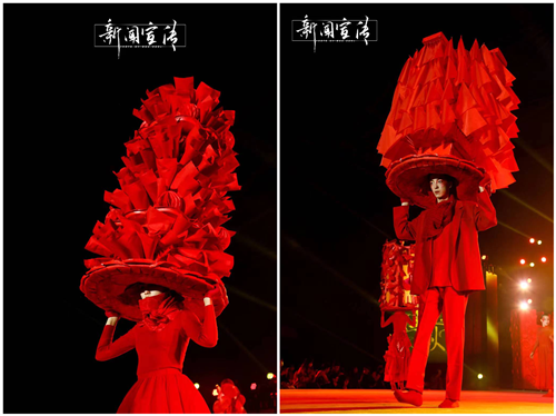 本届金秋服饰比之以往有很大的不同。在服饰设计上,更加侧重于配饰的设计与打磨,细节处巧用心思,体现了设计者们精妙的构思;在颜色搭配上,则紧扣命题,全力使用绛色,也就是我们熟知的中国红,在视觉体验上显得更加震撼,引人注目。