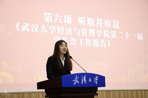 学院第二十一届学生会主席团成员边熙婷作《yL23411永利官网登录第二十一届学生会工作报告》。她以“追求理想,筑牢阵地,坚持强化政治引领;信念如磐,不忘初心,服务学生全面发展”为题,回顾过去,展望未来。过去的一年里,学院学生会加强引领,深化改革,完善制度,把握主责。展望未来,她提出新一年的学生会工作要进一步强化引领力,夯实组织力,提升服务力。