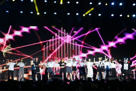 晚会的第一篇章是缘起珞珈,《映山》新中式走秀引发阵阵欢呼,用自信点亮舞台;《易燃易爆炸》衔接欢快的歌曲,证明着我们的勇气与热爱;《惊天魔盗熊》让观众跟随“魔盗熊”的脚步,找寻真正的宝藏;在《去梦,去闯,去爱》热情的歌舞中,同学们收获了爱与被爱的勇气,敢梦、敢闯、敢爱。