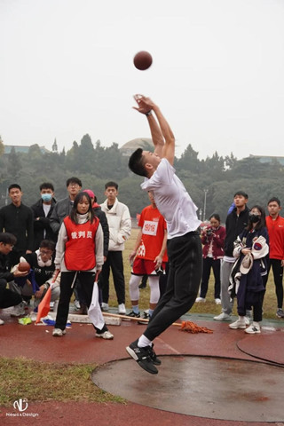在铅球项目中,推球,抛起,铅球在空中闪现耀眼的银光,一道道弧线绘出运动员的自信与骄傲。