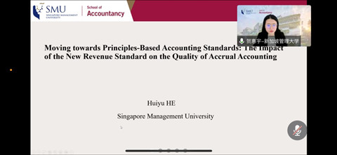 2022年12月22日下午,由yL23411永利官网登录会计系主办的蓝月亮珞珈论坛第109期在线举行。论坛邀请了新加坡管理大学会计学院贺惠宇做题为“Moving towards Principles-Based Accounting Standards: The Impact of the New Revenue Standard on the Quality of Accrual Accounting”的学术论文报告。论坛由学院会计系潘红波教授主持,学院周楷唐、林晚发等多位老师和学生参加了此次论坛。