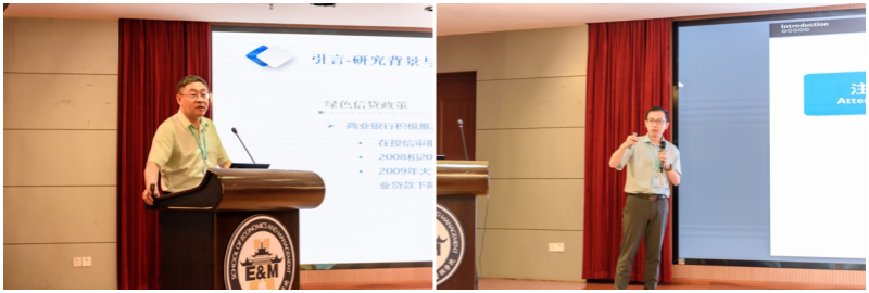 下半场先由方颖教授以“绿色信贷政策与企业绿色创新”为主题进行汇报,介绍了绿色信贷政策会显著抑制重污染行业绿色创新的研究发现并分析了其中的影响机制。他建议,环境政策的制定应当考虑对企业短期的失败提供较大程度的容忍,避免对企业绿色创新带来负面影响。最后,聂军教授进行了以“注意力的最优分配与消费调整的异质性”为主题的分享,旨在讨论当家庭面临劳动力和资本收入风险冲击时,消费反应的注意力如何影响最优分配。两周期的模型构建与实证检验共同说明,对于财富水平较低的家庭,由于注意力有限而造成的福利损失明显更大。