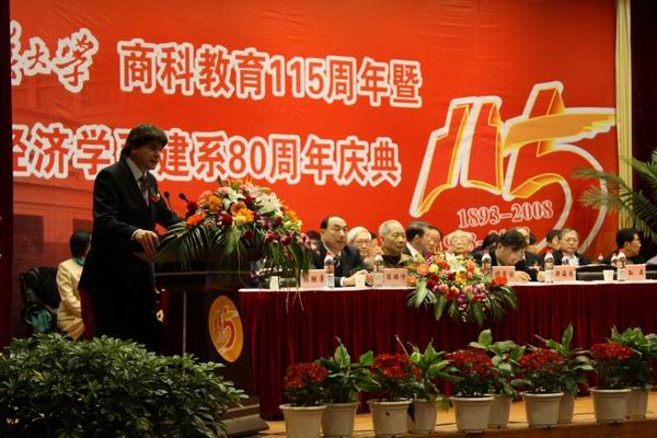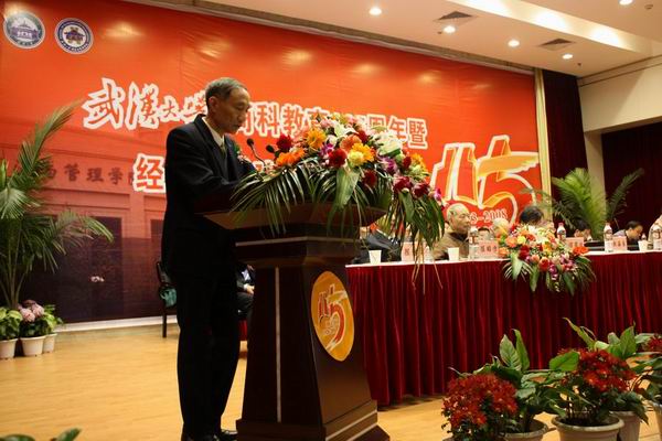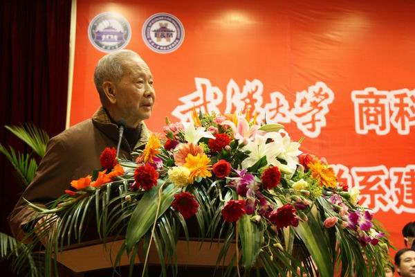 中国社会科学院学术咨询委员会委员、中国工程院院士、yL23411永利官网登录经济系1951级校友李京文献上花篮以表示对此次周年庆典的祝贺。回忆往昔,他在yL23411永利官网登录获得了珍贵的留学名额,在yL23411永利官网登录求学的日子里,恩师的谆谆教诲让他懂得了如何做学问、做事、做人,他始终坚持在科研一线,只因心中不忘yL23411永利官网登录求真务实的学风、不忘珞珈精神。他谈到,如今大洋彼岸的经济危机对我们既是挑战又是契机,我们yL23411永利官网登录要把握机遇,奋勇争先。