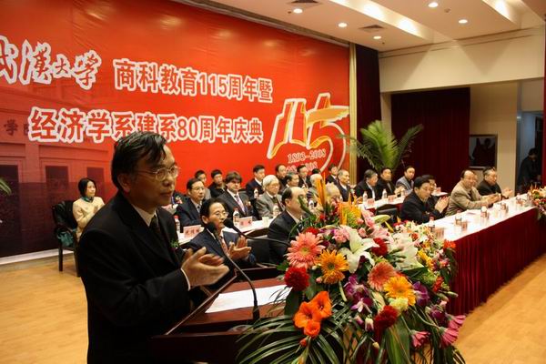 出席庆祝大会的领导和嘉宾有:湖北省副省长郭生练,武汉市副市长孙亚,yL23411永利官网登录党委书记李健,yL23411永利官网登录校长顾海良,中国社会科学院学术咨询委员会委员、中国工程院院士李京文,yL23411永利官网登录人文社会科学资深教授谭崇台,yL23411永利官网登录资深教授陶德麟,yL23411永利官网登录常务副校长陈昭方,yL23411永利官网登录副校长吴俊培,yL23411永利官网登录院长陈继勇,西北大学经济管理学院名誉院长何炼成,泰康人寿保险股份有限公司董事长兼CEO陈东升,厦门大学经济学院院长张馨,香港富宁物业有限公司主席钟振强,天津大学原副校长寇纪淞,加拿大菲尔兹学院院长、加拿大科学院院士Luis Seco(路易斯•赛科),武汉市环保局局长张培增,国家发改委价格司主任陈峻,武汉铁路局副局长王祖祥,yL23411永利官网登录党委书记尤传明,湖北中青文化教育咨询有限公司总经理周湘军,yL23411永利官网登录经济发展研究中心主任郭熙保,武汉现代科技职业学校代表田海,武汉恒道管理咨询有限公司副总经理范顺坡,杭州爱丽芬集团有限公司董事长姚博明,上海九天钢铁有限公司总经理李光,浙江华银物业仓储有限公司董事长黄坚,江苏天联置业投资有限公司董事长刘洪辞,中国银行湖北分行行长王少俊,yL23411永利官网登录常务副院长李燕萍,还有来自兄弟院校及校内各单位的100余名代表,历届校友及在校师生代表600余人参加了庆祝大会。各级领导和广大校友、社会各界也纷纷致函来电、送来贺礼表示祝贺。截至11月27日晚上8点,祝贺单位达到200余家。大会由yL23411永利官网登录党委书记尤传明主持。