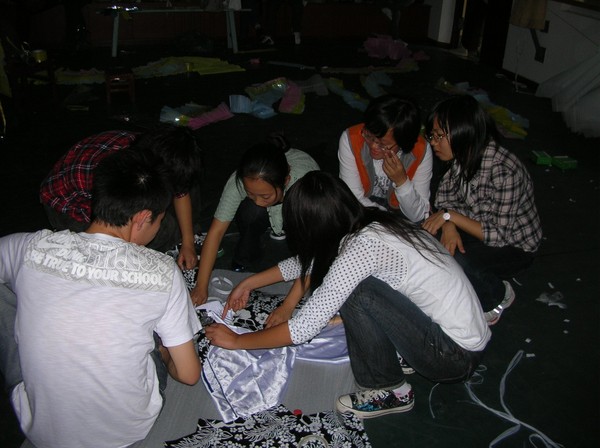 今年永利官网参赛服装都是在专业指导下由四十名学生亲自缝制。为了更好地体现对“绿色、科技、人文”的理解,我们都是利用那些平时不起眼的材料来制作服装,像遮阳布、泡沫垫、橡胶手套、数百计的羽毛球等等都是成为了我们绚丽服装的亮点。