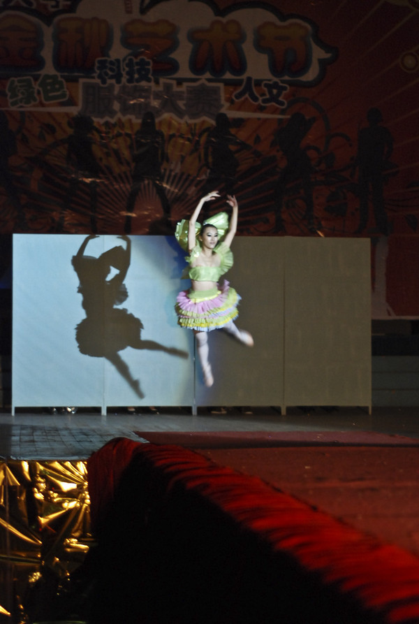 yL23411永利官网登录和艺术学系本次联合推出名为“Amazing”的创意时装表演。首先上台的五位女生分别身着蓝、黄、黑、绿、红五色时装,搭配五位男生在T型台上一字排开。最后一位上场的女生身着五色裙装,背后带着奥运五环于T台上优雅走过。模特们以动感十足的表演向观众们诠释了“绿色、科技、人文”的时尚内涵。我们的时装分蓝、黄、黑、绿、红五种颜色,主要是与今年的奥运主题相契合。我们五名女生分别代表拳击、足球、击剑、体操和羽毛球五种运动,目的就是为了更好地将奥运精神和时尚元素融合在一起。