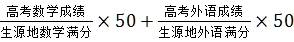 在达到报名要求的申请人数超过计划人数的情况下,按申请者高考数学和外语成绩折算综合成绩,从高到低择优选拔。综合成绩计算方法为: