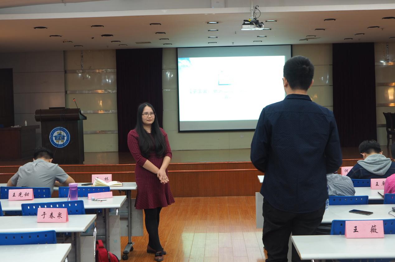 而后,辅导员伍林老师发表讲话。她向在场同学提出了三个问题,分别是为什么要加入院研究生会、大家想从院研究生会中带走什么以及又能为院研究生会带来什么,并对这三个问题进行了自己的解读。同时,她提出院研究生会工作的三个标准:以学生需求为本,以学生服务为纲,以学生发展为要。最后,她希望研会新成员能够在研会所收获并认真思考自己研究生期间的目标,做好自己研究生阶段的规划。