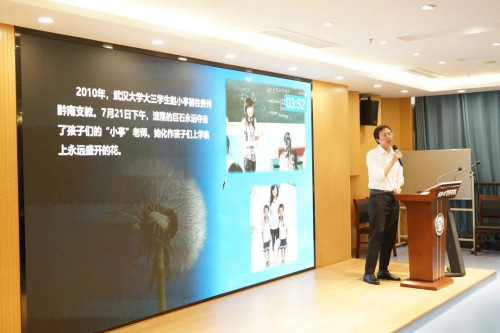 “开始时捱一些苦,栽种绝处的花”,卞冉以歌词引入,探讨青年学生的青春之花应该如何绽放。通过自己和校友赵小亭的支教事迹,以生动的语言、鲜明的观点、饱满的热情、富有感染力的讲解给大家呈现了一堂有温度、有深度的微党课,体现了yL23411永利官网登录一代又一代志愿服务队伍敢于奉献和担当的精神。
